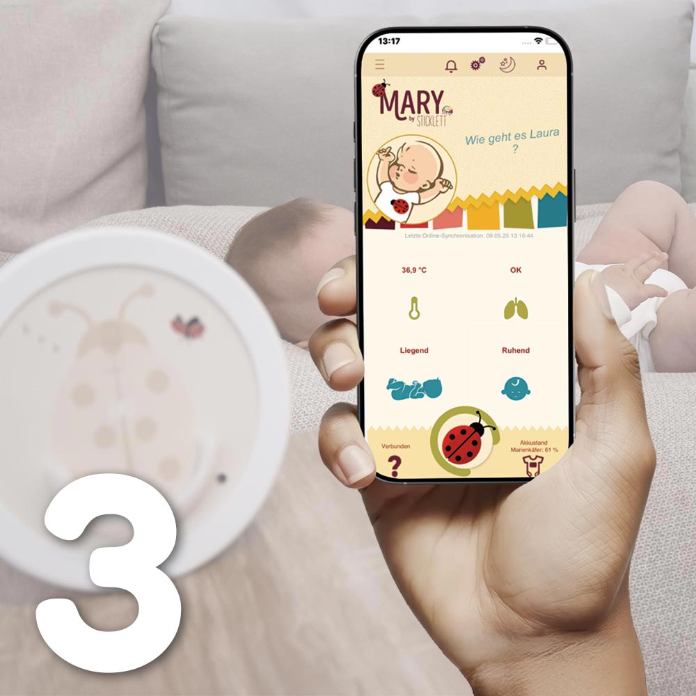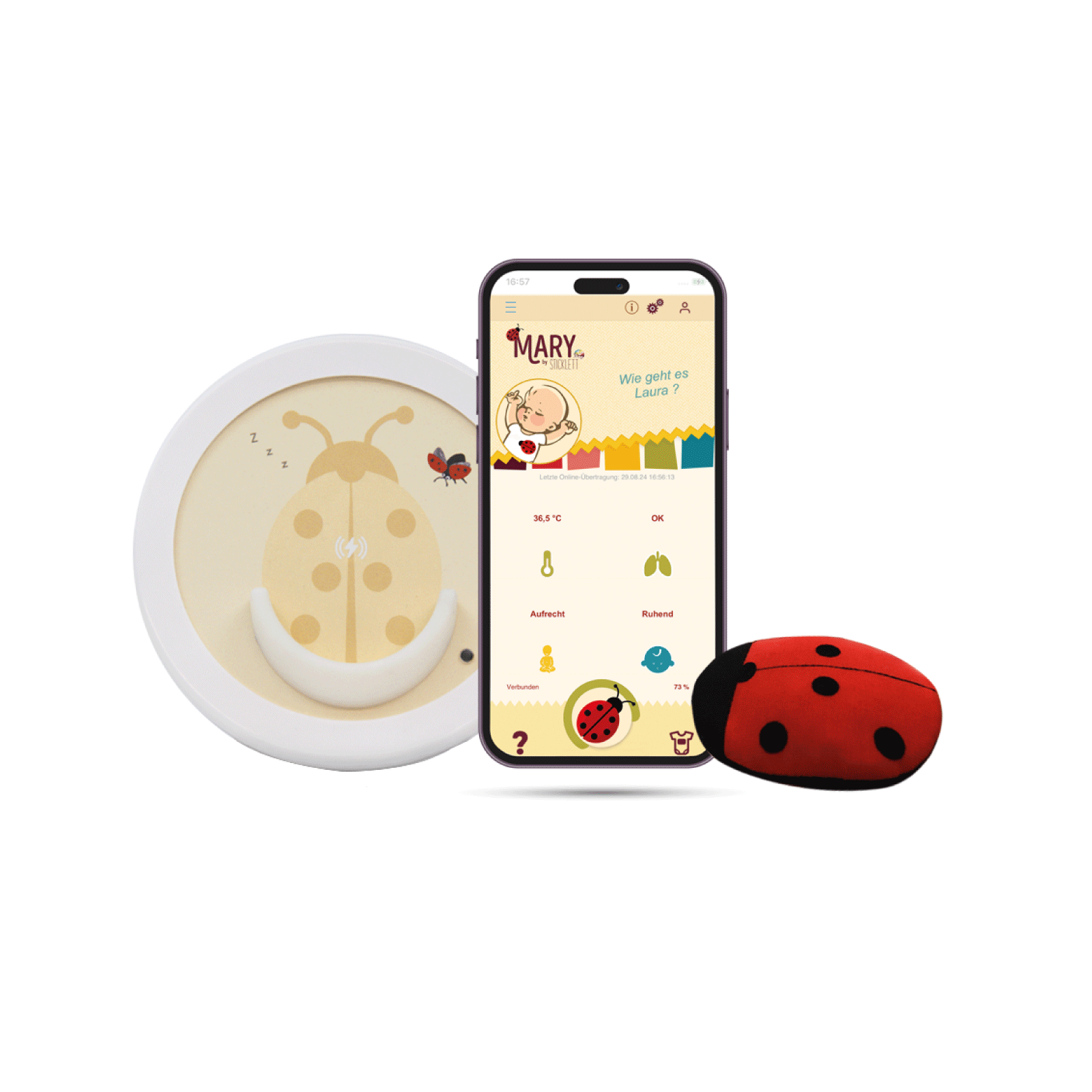 I'm Michaela, a mother of two daughters. When my first was born, I suddenly felt like I was constantly thinking about her: Is she okay? Is everything all right? The products that were supposed to help often felt cold, complicated, and not very child-friendly. So I developed MARY: A little ladybug who always thinks for herself without being a nuisance. A system that doesn't bring surveillance into the nursery, but rather security and peace of mind.